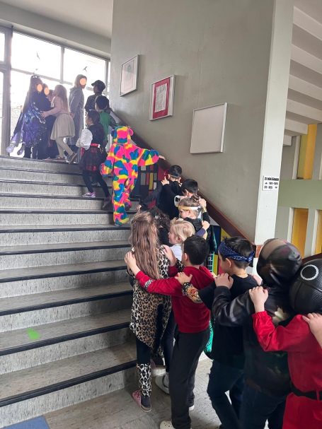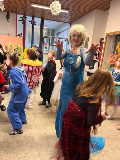 Am Freitag vor den Ferien wurde in unserer Aula fröhlich gefeiert! Bei unserer gemeinsamen Faschingsfeier kamen alle Kinder, Lehrerinnen und Lehrer bunt verkleidet zusammen.